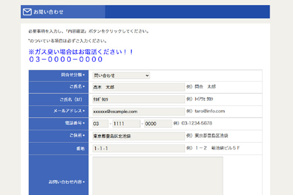 ガス機器の不具合に関するお問い合わせや、電気の供給・住宅リフォームに関するご相談などもお問い合わせフォームから簡単にできます。